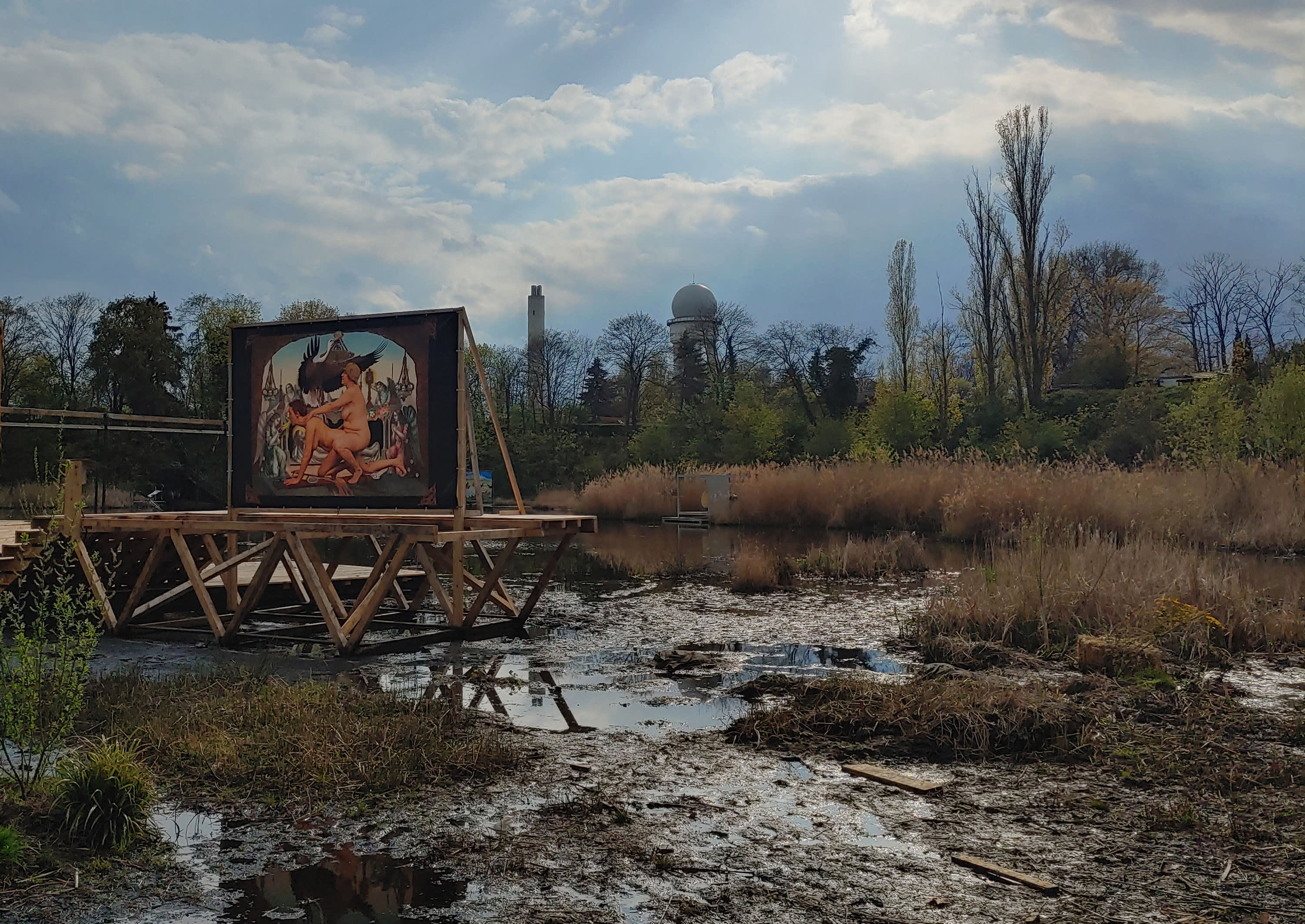 scaffolding parts, hoses, steel, nickel and diesel nozzle and water. 150 x 100 x 100 cm. Photo: Si Wachsmann